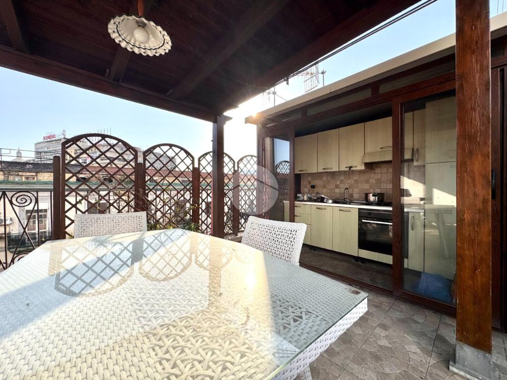 Uno dei punti di forza della proprietà è lo splendido terrazzo a livello di proprietà esclusiva, dal quale si gode di una vista aperta su Castel Capuano. Essendo ubicato all’ultimo piano, l’appartamento beneficia di vista libera, grande luminosità e massima privacy, elementi che rendono il terrazzo uno spazio ideale per momenti di relax all’aperto.
